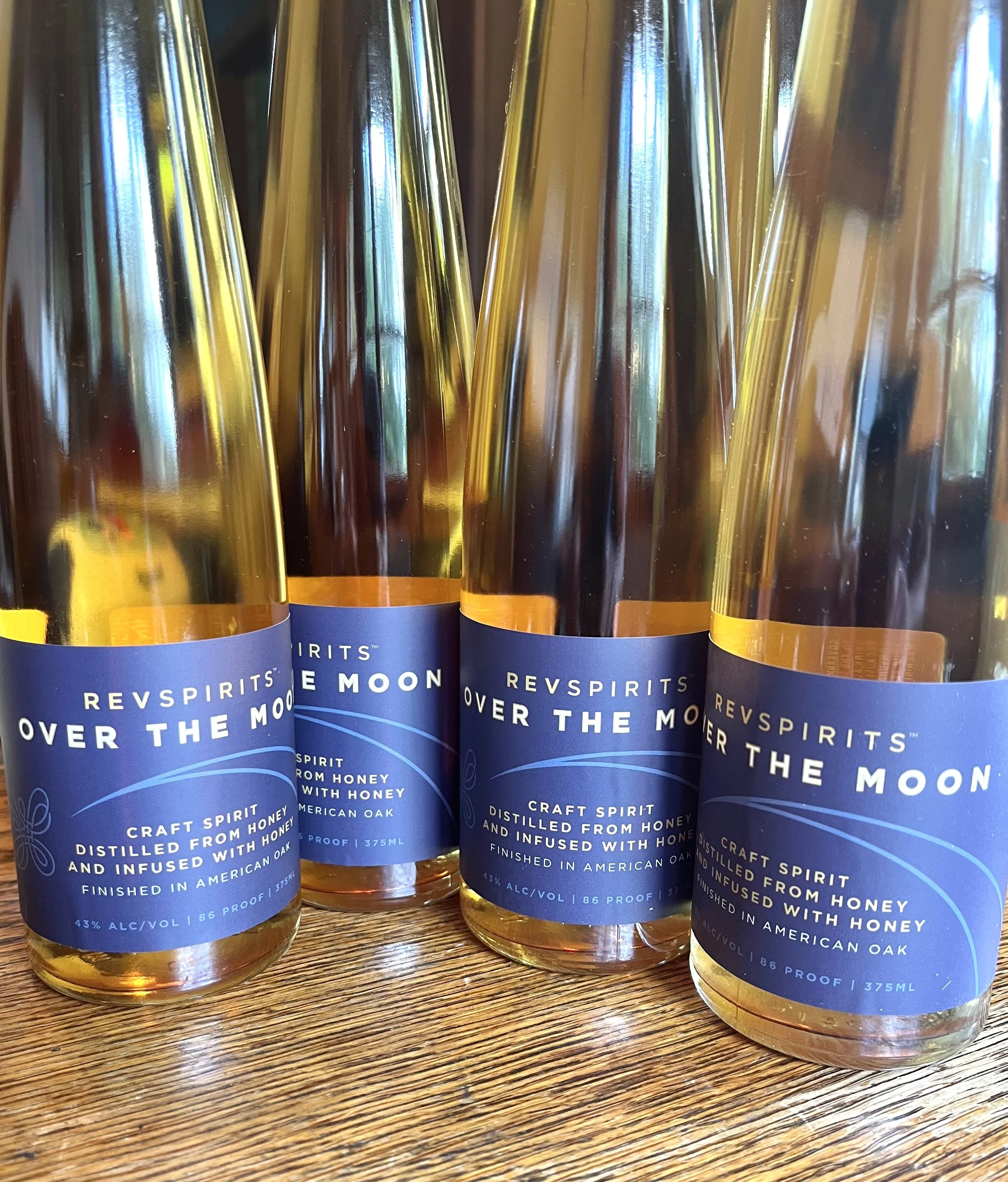 Craft spirit distilled from honey and infused with honey, finished in American Oak. Inspired by Libration liqueur, Over the Moon is oak-aged and has a touch of raw honey as a sweet reminder of the vital role honey bees play in all our lives.
